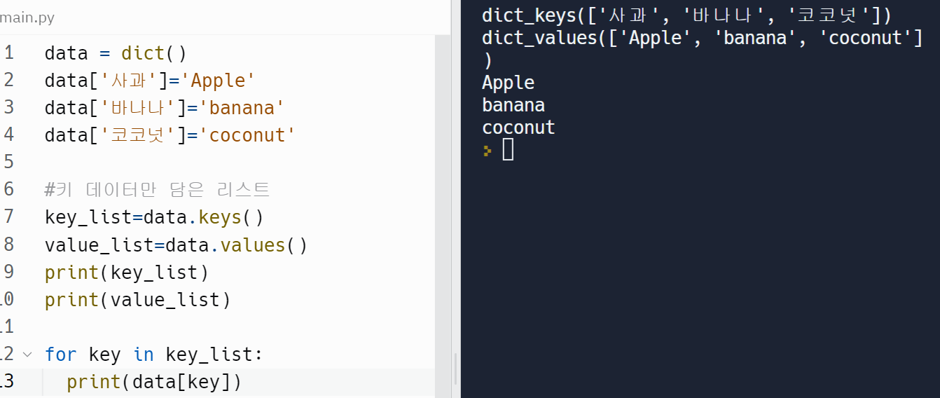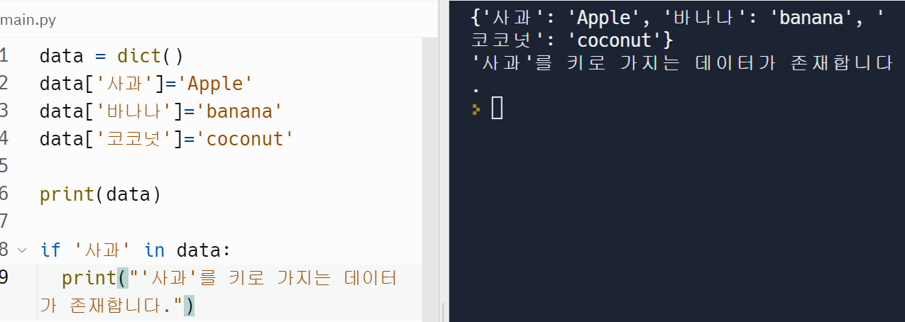 - 사전 자료형과 집합 자료형은 순서가 없기 때문에 인덱싱으로 값을 얻을 수 없습니다